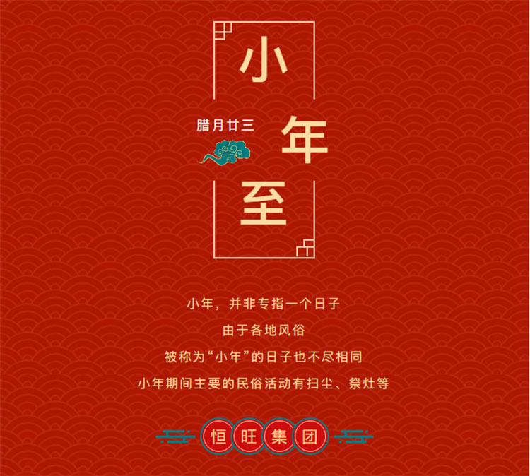 恒旺集團攜全體員工恭祝全國人民:小年快樂、身體健康、財運旺盛、闔家幸福、萬事如意、心想事成!