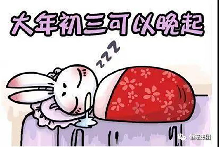 因?yàn)樽源竽耆σ沟匠醵陂g大伙大多都守夜勞累,所以到了初三這天便可以安睡遲起,好好調(diào)理調(diào)理身體,養(yǎng)足精神,以備新年里精神抖擻。