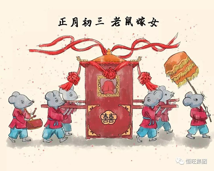 根據(jù)我國(guó)古代的傳說(shuō),大年初三是“老鼠娶親”的日子,所以相傳入夜后,就必須早早熄燈就寢,讓老鼠家族們舉行婚禮,并在家中各處撒鹽與米,意思是要與“老鼠分錢”。