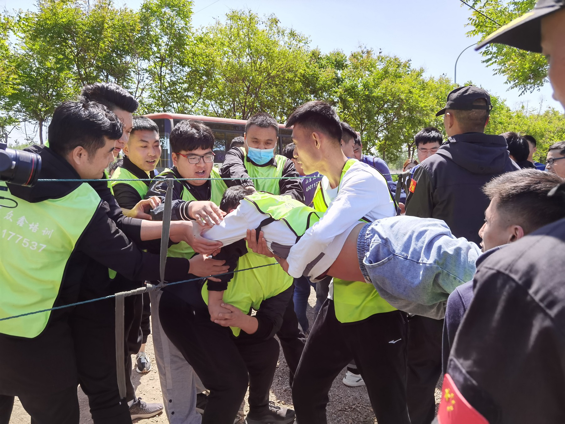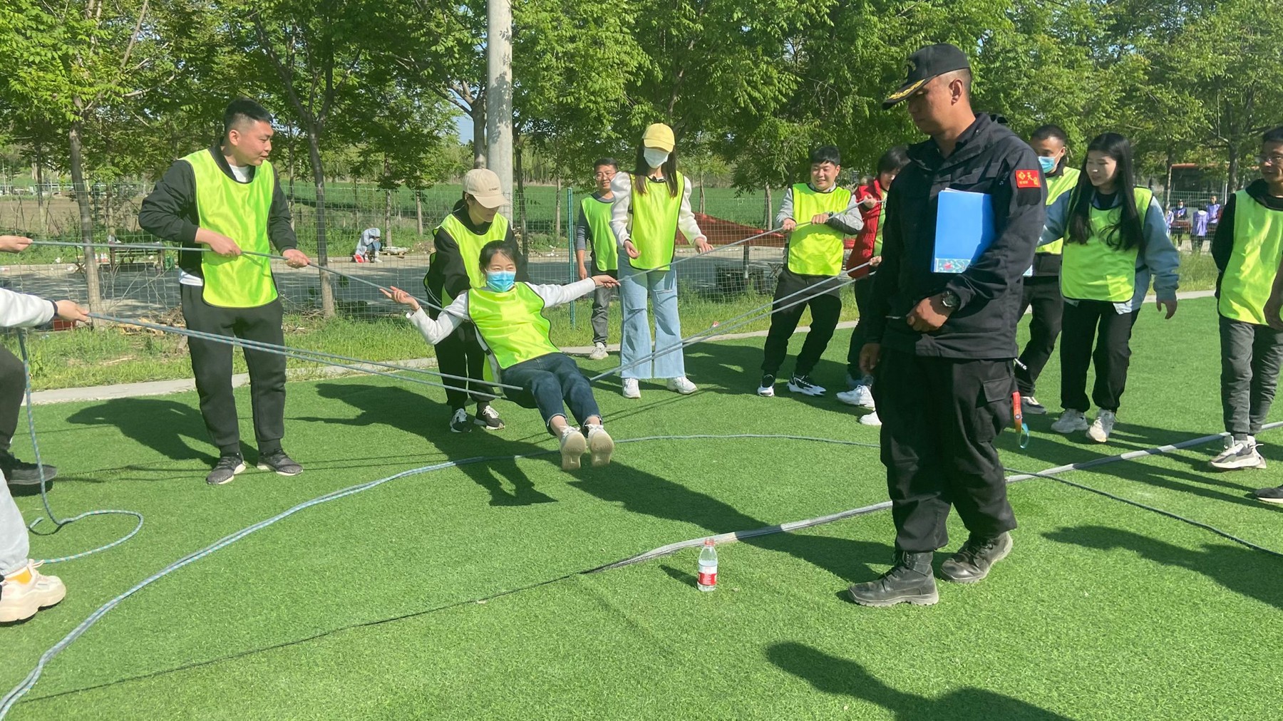 生死電網(wǎng)項(xiàng)目要求小隊(duì)內(nèi)每一個(gè)成員通過狹窄的逃生口成功脫險(xiǎn),各隊(duì)成員拋掉疏離走向信任,分工協(xié)調(diào)、精細(xì)操作、迎難而上,化不可能為可行,助力隊(duì)友成功‘逃生’,磨煉了戰(zhàn)勝困難的毅力,提振了自信心。
