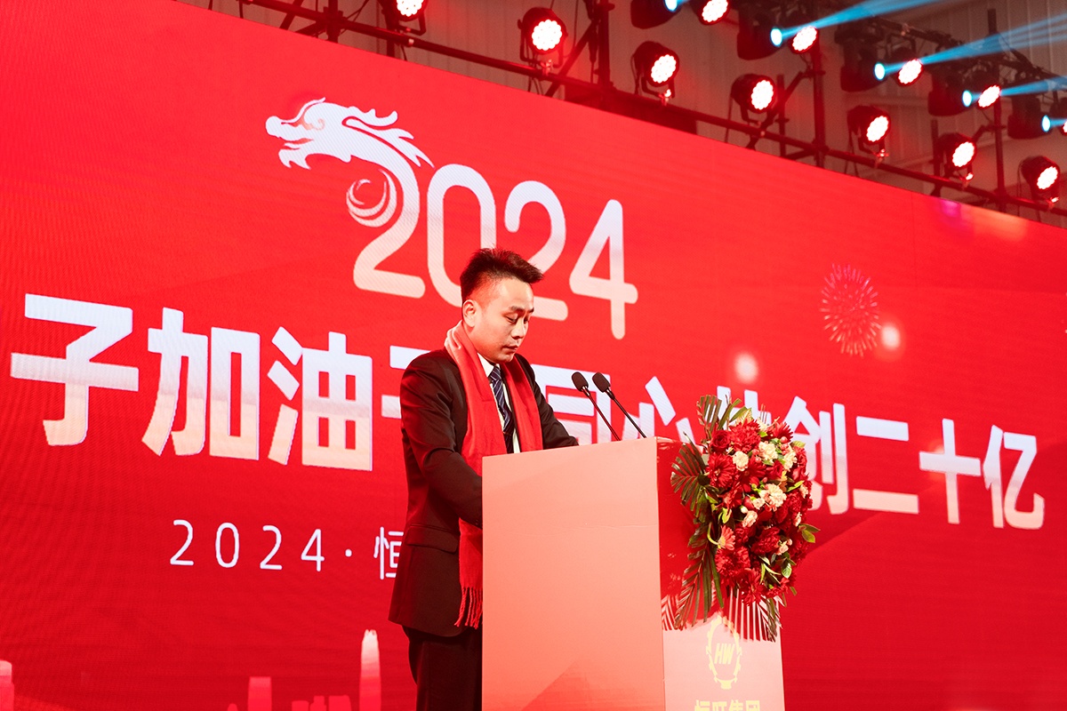 大會(huì)伊始,恒旺集團(tuán)董事長(zhǎng)劉明濤先生發(fā)表致詞,首先對(duì)長(zhǎng)期以來(lái)支持恒旺集團(tuán)發(fā)展的各位同仁及全體員工表示衷心的感謝并致以新春祝福。他指出自2011年公司成立以來(lái),歷經(jīng)十三年高速發(fā)展,企業(yè)規(guī)模不斷擴(kuò)大、行業(yè)口碑不斷提升,綜合實(shí)力不斷增強(qiáng)。回首2023年,是集團(tuán)全員團(tuán)結(jié)協(xié)作、共克時(shí)艱,成功實(shí)現(xiàn)業(yè)績(jī)目標(biāo)的一年,這一切成就都離不開每一位員工的辛勤付出和不懈努力。展望充滿希望的2024年,隨著新的機(jī)械裝備智能化生產(chǎn)基地的落成,我們將邁上新臺(tái)階。恒旺集團(tuán)也將繼續(xù)秉承銳意進(jìn)取的精神,不斷擴(kuò)大海外市場(chǎng),持續(xù)創(chuàng)新和完善企業(yè)管理和服務(wù)水平,共同開啟恒旺更加輝煌的未來(lái)。