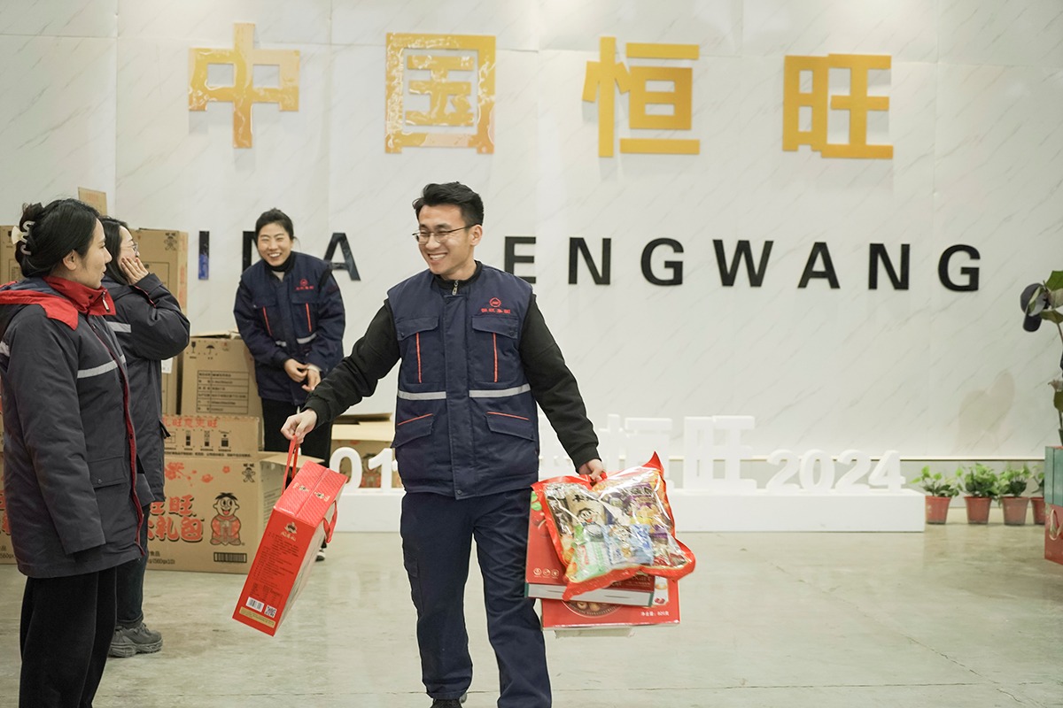 豐富年貨,濃郁年味,在福利發(fā)放現(xiàn)場氣氛熱烈,每個人臉上的笑容是寒冬最溫暖的寫照。暖心的節(jié)日福利不僅給大家?guī)砹藵馇榈拇汗?jié)祝福,也帶來了滿滿的希望與干勁。以更加飽滿的狀態(tài)譜寫恒旺集團(tuán)2024新篇章。