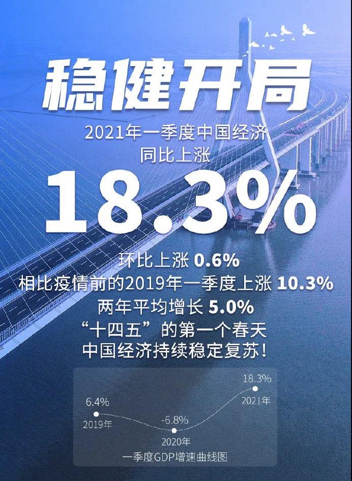 4月16日,國家統(tǒng)計局發(fā)布數(shù)據(jù),初步核算,一季度國內(nèi)生產(chǎn)總值249310億元,同比上漲18.3%,環(huán)比上漲0.6%,相比2019年上漲10.3%,兩年平均增長5.0%,實現(xiàn)穩(wěn)健開局。